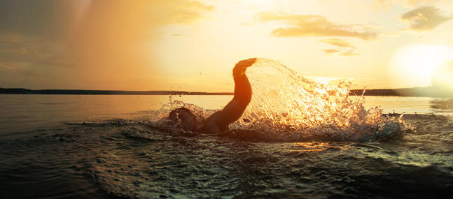La nage illustre de façon parfaite les rapports entre nos parties conscientes et inconscientes. La tête – le Conscient – émerge de l’eau alors que le corps – l’Inconscient – est immergé totalement, et chacun est animé différemment. Nous voyons que, comme pour l’iceberg, l’Inconscient est proportionnellement beaucoup plus grand que le Conscient. Pourtant, c’est la tête qui dirige, alors que le corps est tout entier occupé aux fonctions vitales, celles qui permettent de nager, de respirer, de ne pas se noyer ; il est capable d’autonomie. C’est le corps qui ressent les notions de sécurité ou de peur, qui réagit de façon instinctive, l’Inconscient qui peut se substituer au Conscient face au danger ou à des situations déjà reconnues.